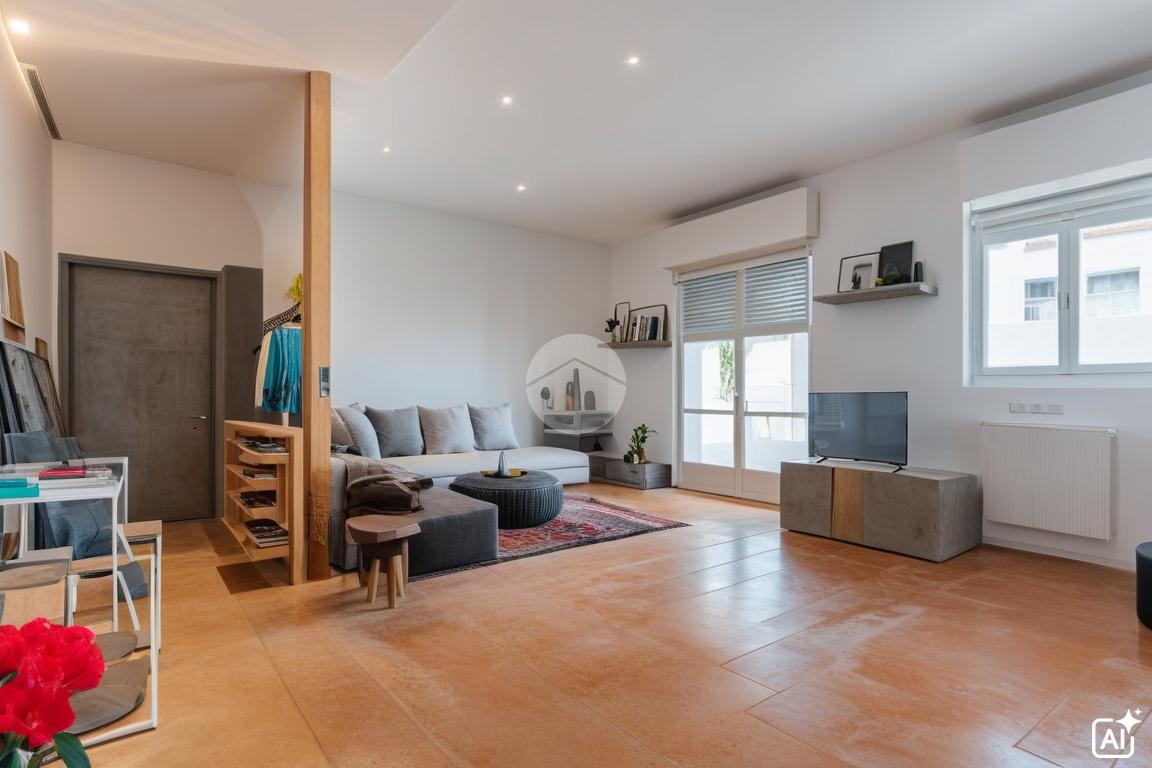L’ingresso conduce all’ampio e luminoso soggiorno, con accesso diretto al balcone, e alla cucina abitabile.